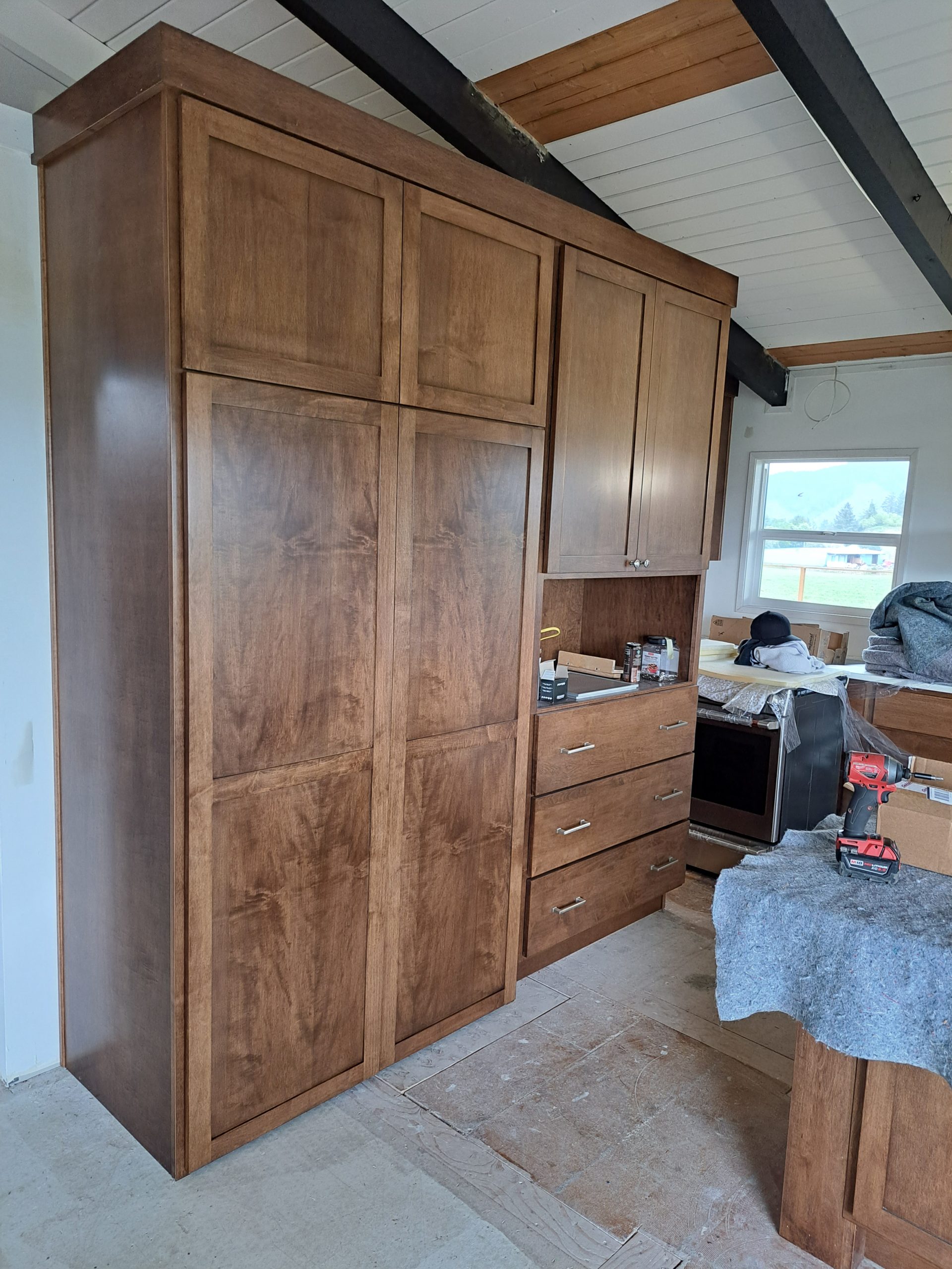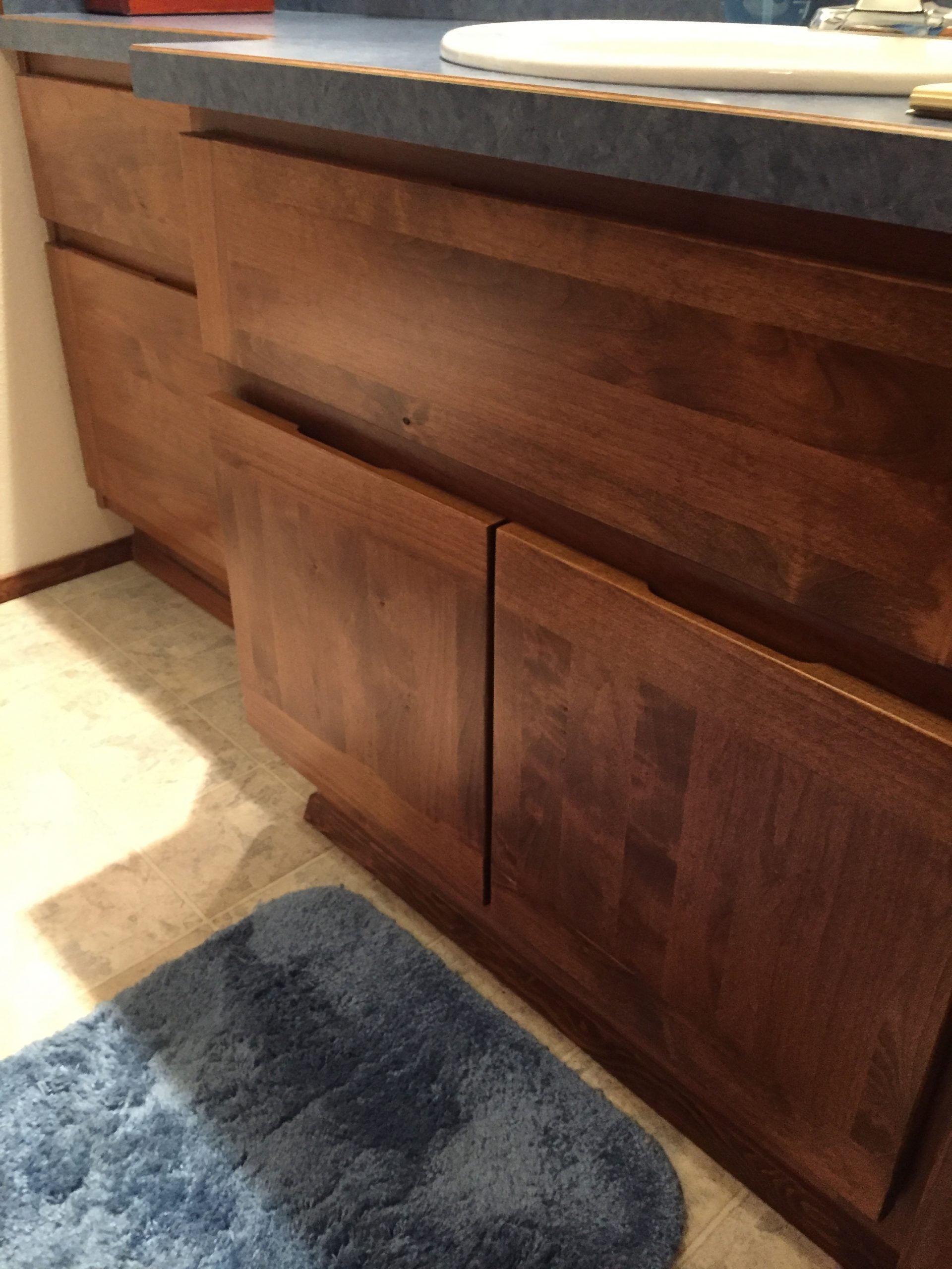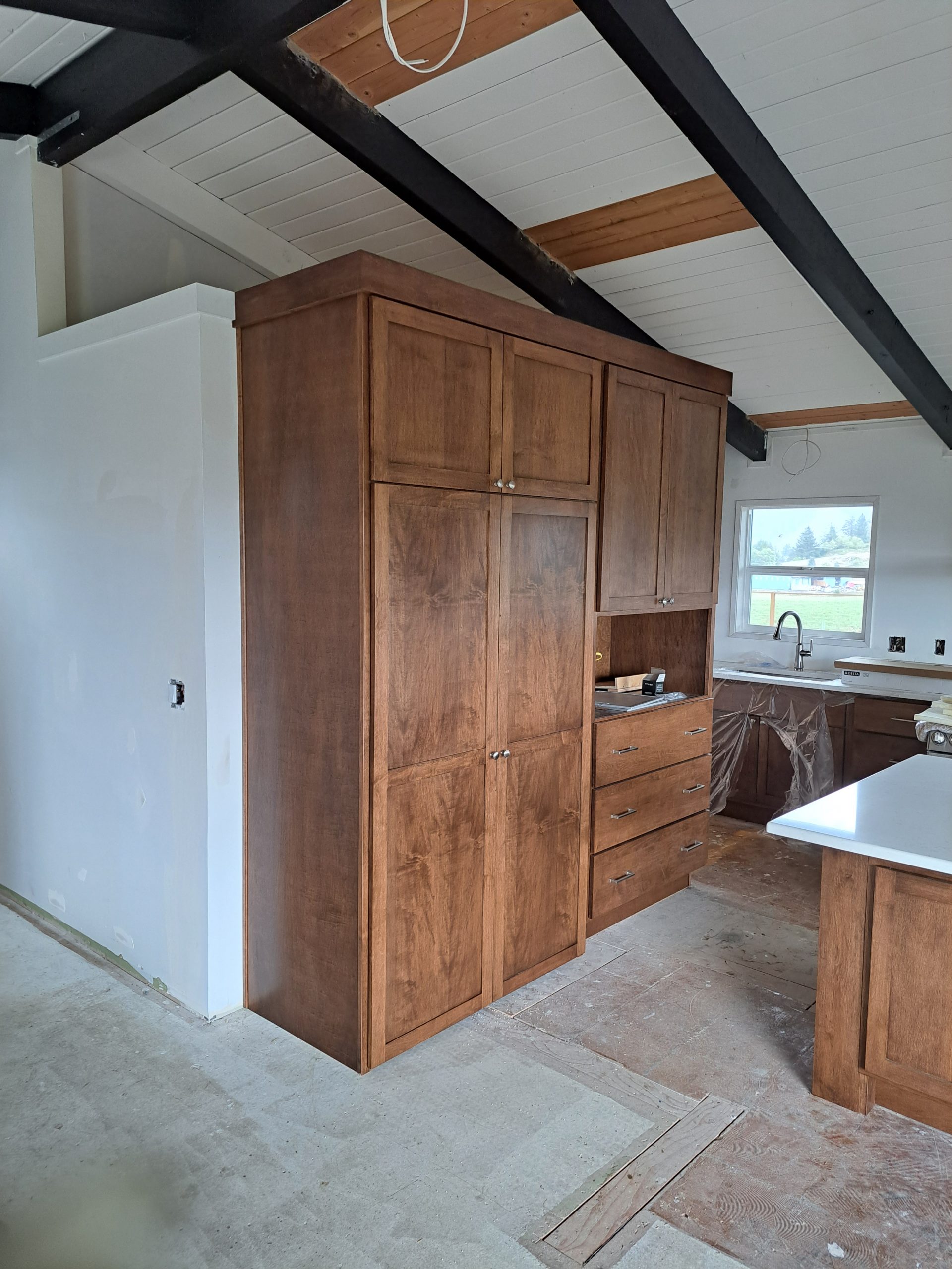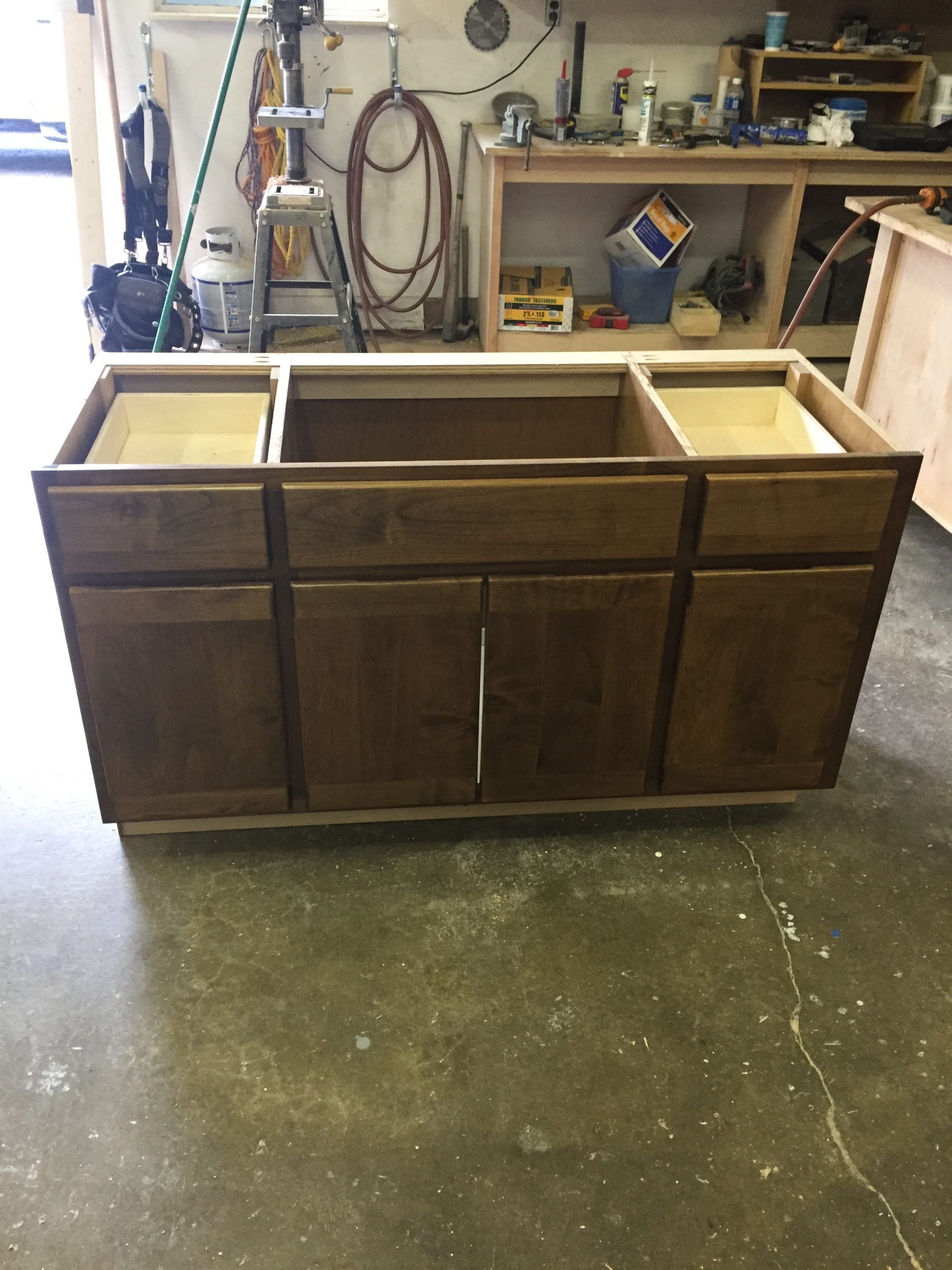 This project was a custom cabinet build for my first customers who wanted me to build them a kitchen from scratch at my first real shop. It has held up nicely. I have been back several times over the years to check on it when I remodeled their bathrooms, mantle, built a walnut cabinet, and various other projects (some of which are pictured).
