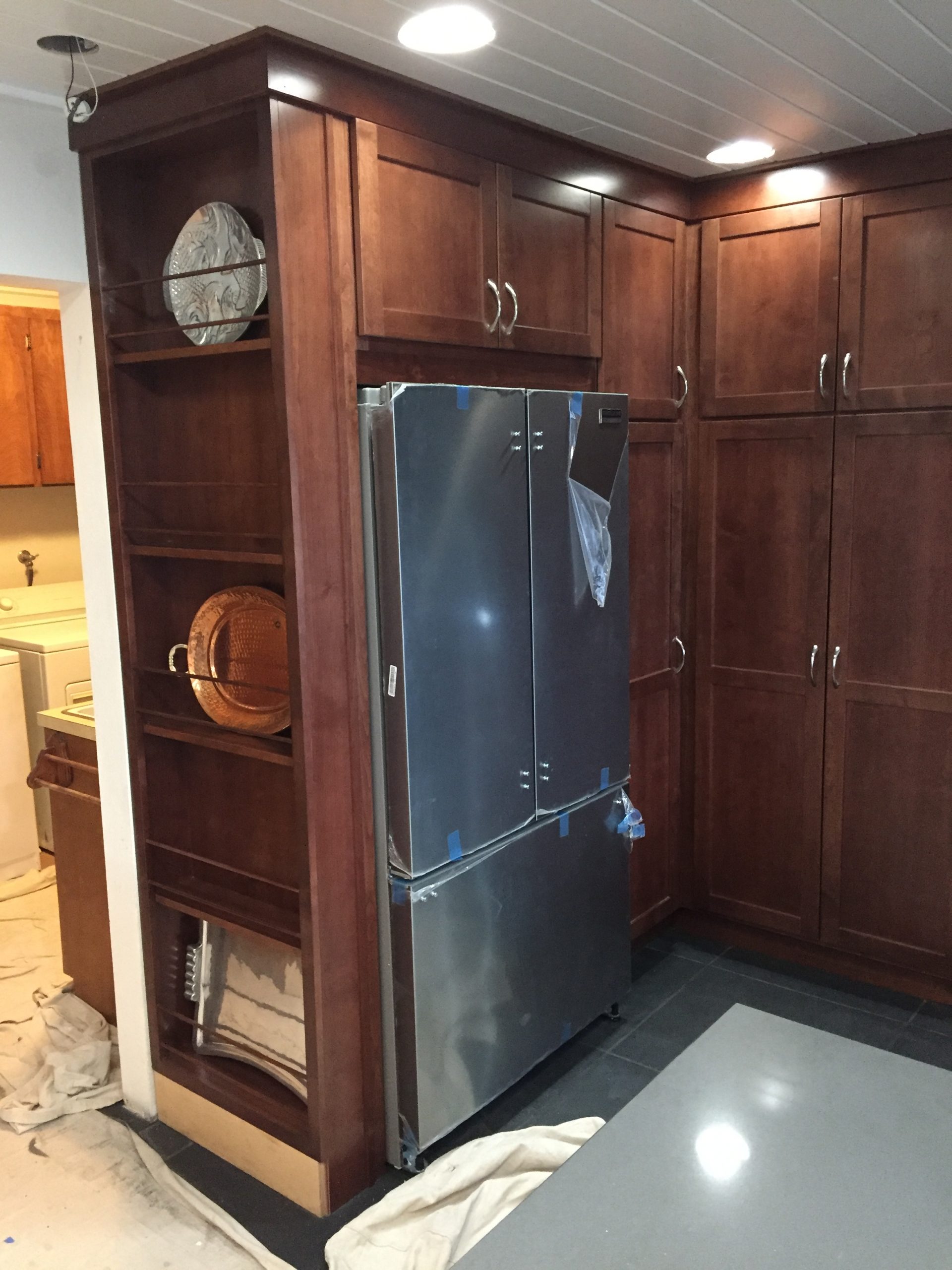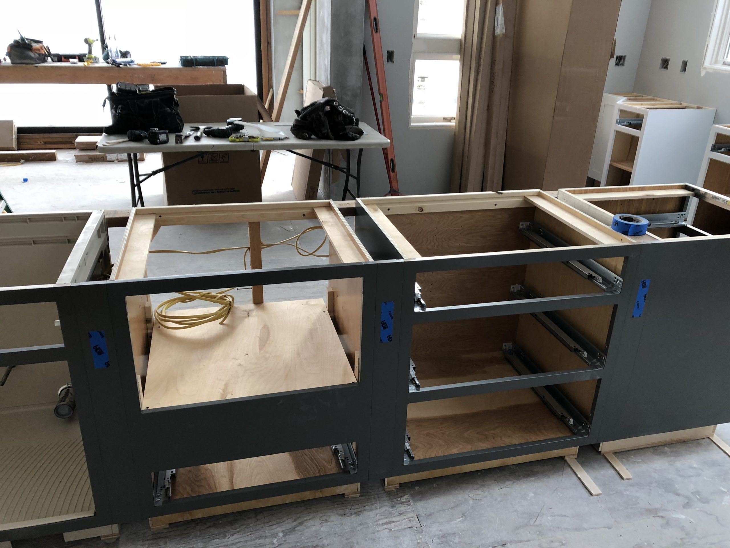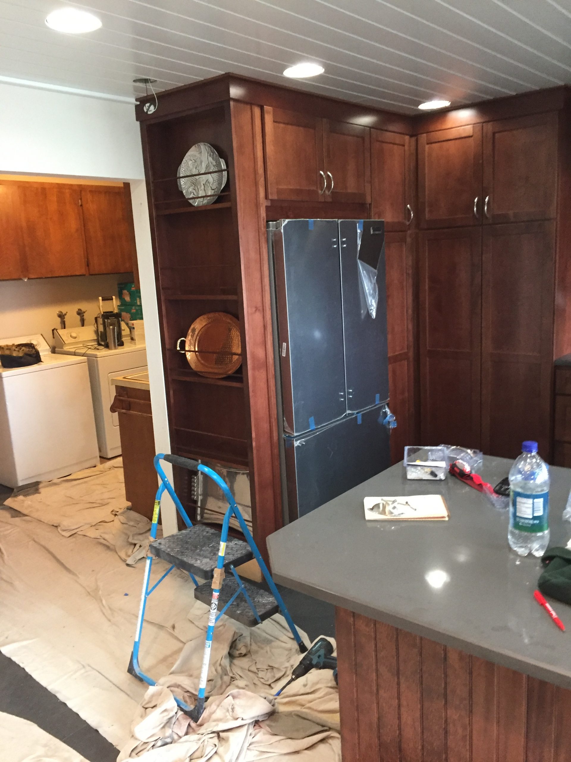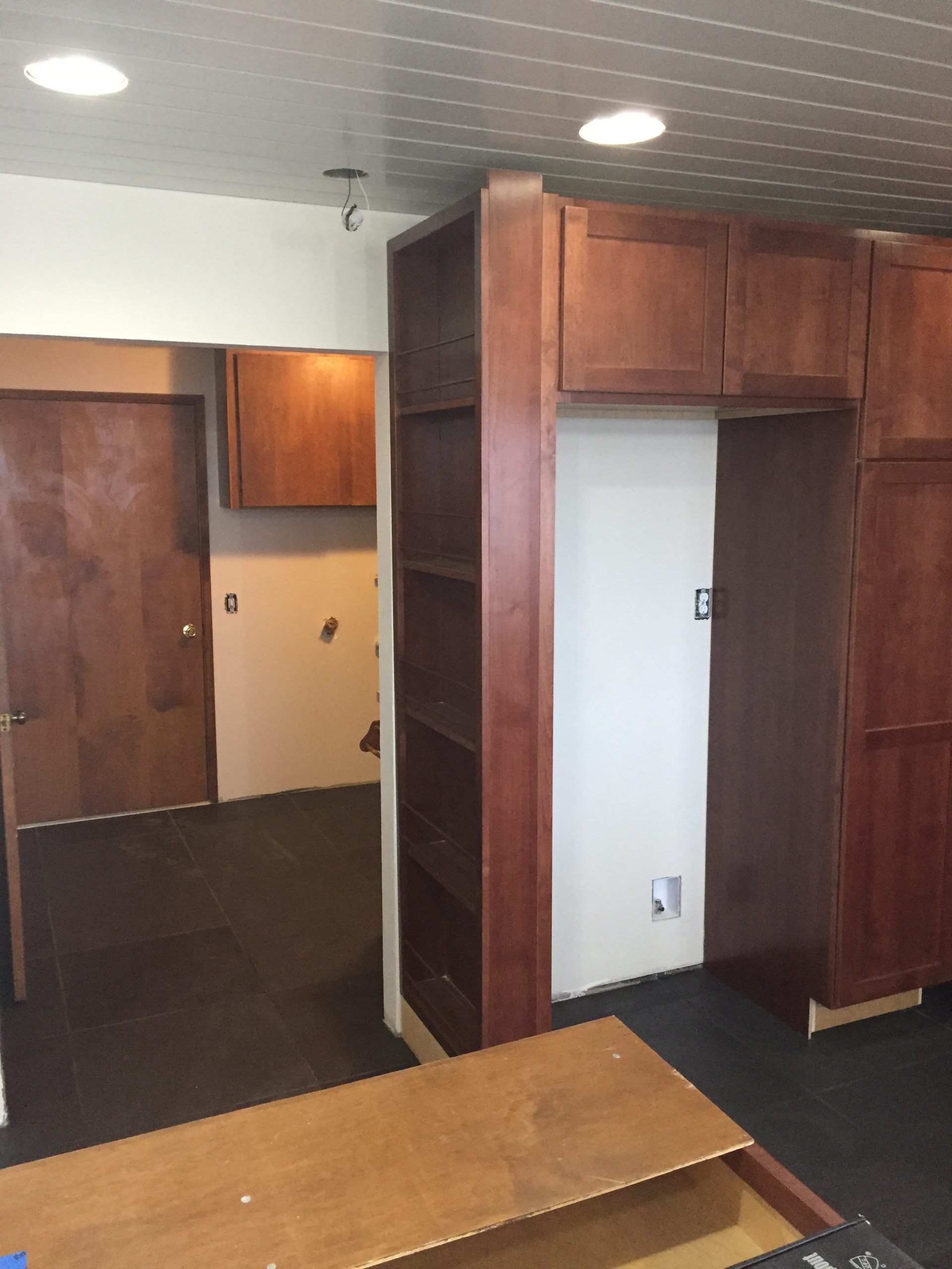 This project was a custom cabinet build for my first customers who wanted me to build them a kitchen from scratch at my first real shop. It has held up nicely. I have been back several times over the years to check on it when I remodeled their bathrooms, mantle, built a walnut cabinet, and various other projects (some of which are pictured).