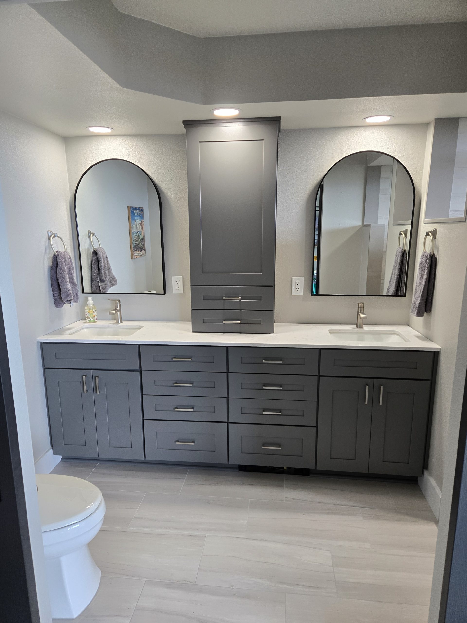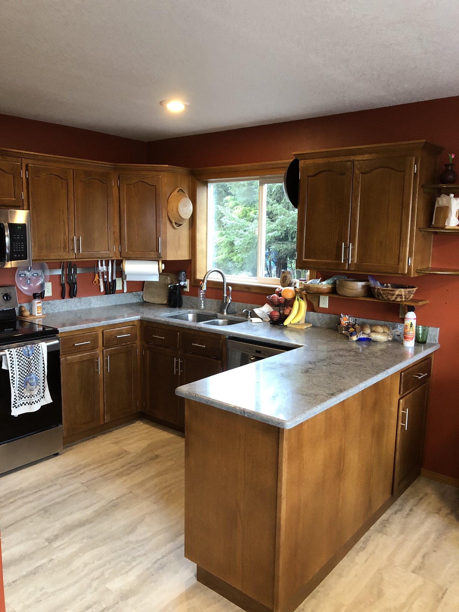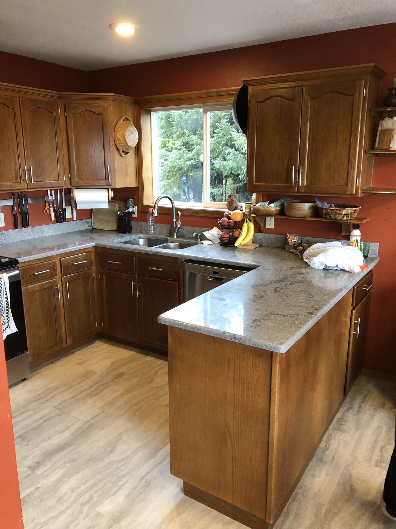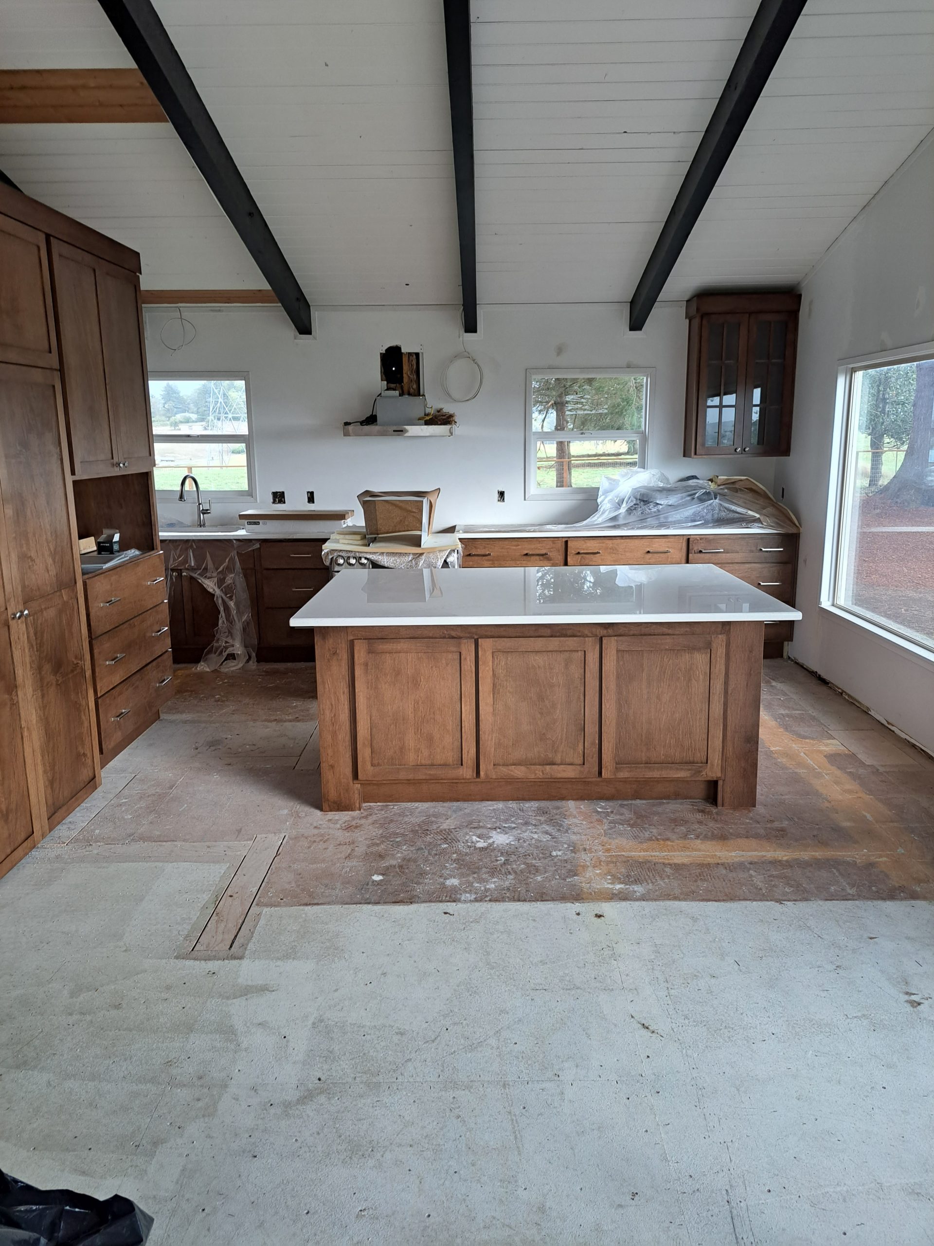 This project was a custom cabinet build for my first customers who wanted me to build them a kitchen from scratch at my first real shop. It has held up nicely. I have been back several times over the years to check on it when I remodeled their bathrooms, mantle, built a walnut cabinet, and various other projects (some of which are pictured).